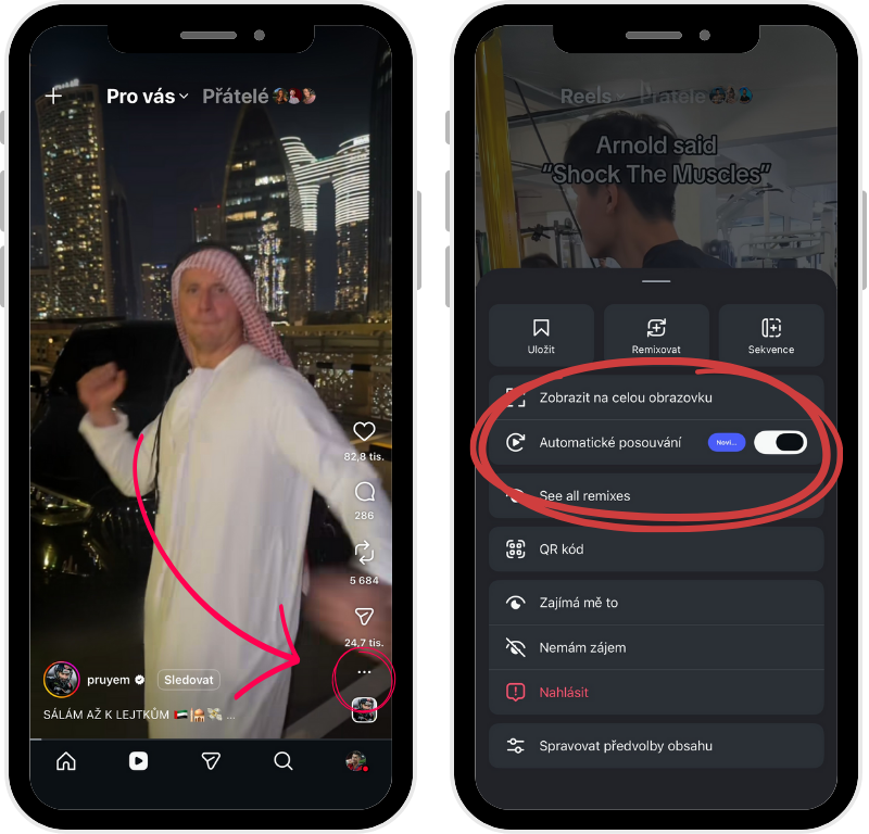 První funkcí, na kterou se v tomto článku zaměříme, je automatické posouvání Reels. Jde o možnost, která po zhlédnutí celého videa automaticky přehraje následující reel v sekci Pro vás. Stejnou funkci už dříve zavedl také TikTok, který bývá v oblasti videa zpravidla o krok napřed.