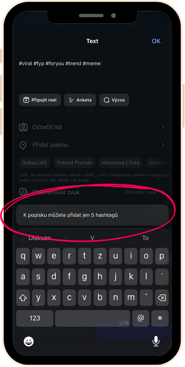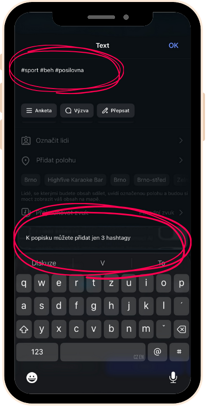 Nový maximální počet hashtagů u příspěvku je omezen na tři. Jakmile se pokusíte přidat více, aplikace vás okamžitě zastaví ve chvíli, kdy napíšete znak #. Zobrazí upozornění, že je možné použít pouze tři hashtagy a samotný znak následně automaticky vymaže.