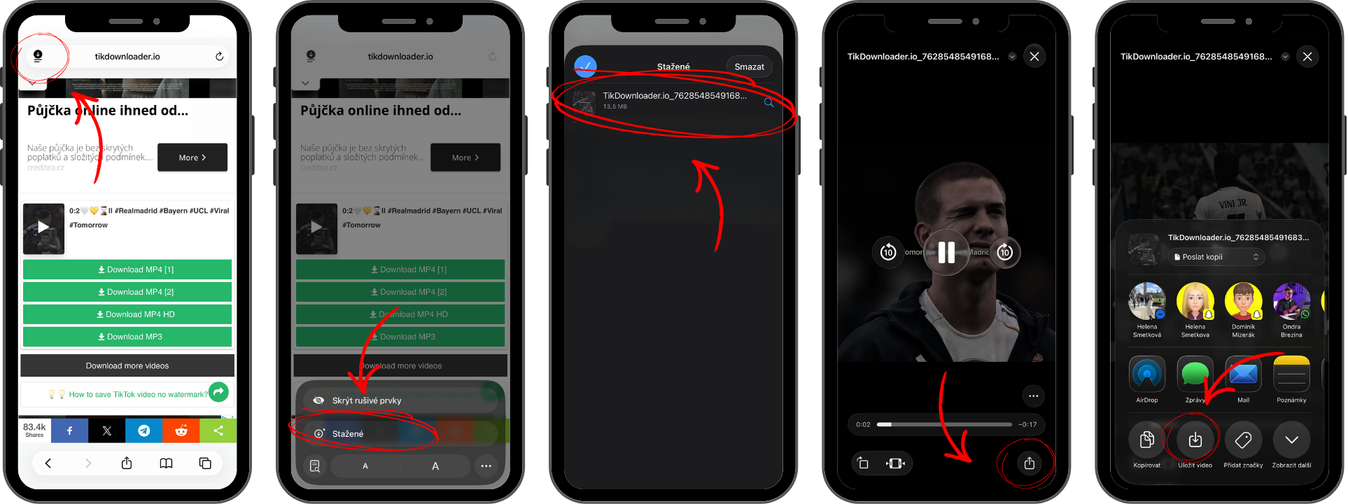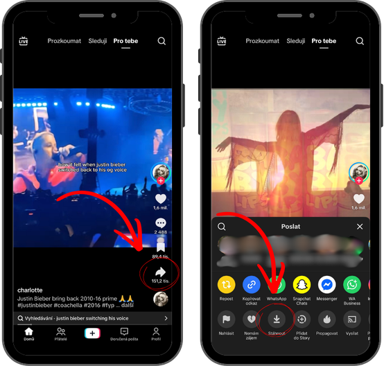 Grafický návod pro stažení TikTok videa krok za krokem