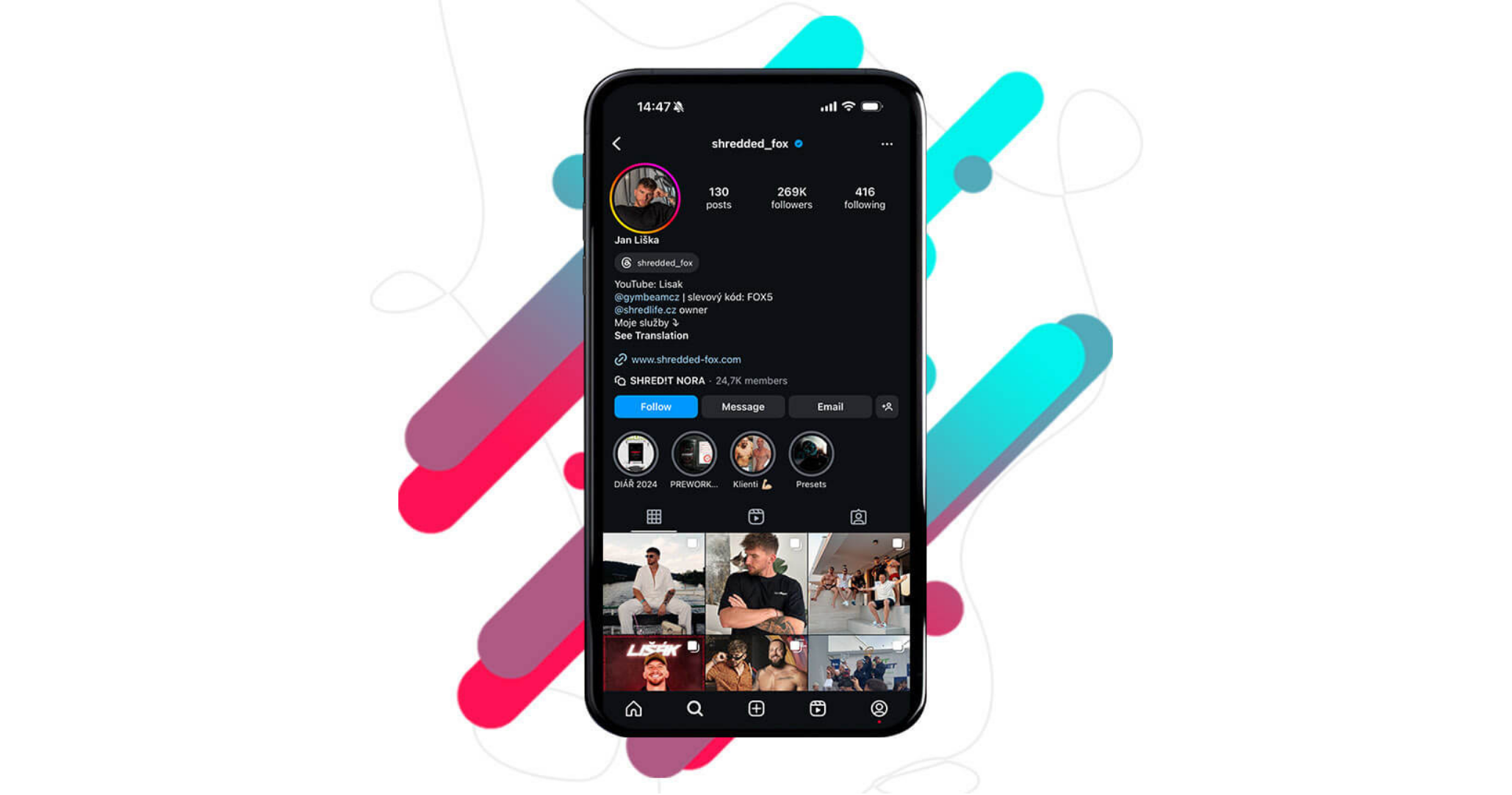 Pokud máte rádi humor nebo se zajímáte o lifestyle, fitness či zdravý životní styl a neznáte Lišáka, tak jste pravděpodobně zaspali dobu. @shredded_fox alias Jan Liška je mladý influencer zabývající se tématem fitness a cestování, s Instagramovým účtem, aktuálně o velikosti 315 tisíc followers a TikTok účtem o velikosti 208 tisíc followers.