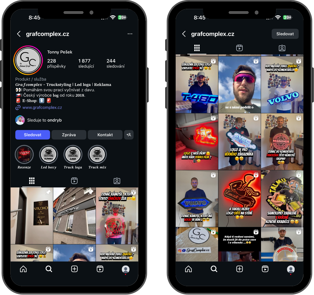 V dalším z našich rozborů společných cest s klienty se zaměříme na menšího tvůrce, profil grafcomplex, tvořící reklamu podnikání zaměřené na výrobu neonových log, který upřednostnil dosahy před růstem sledujících a díky tomu proměnil svůj profil ve velmi kvalitní propagační nástroj.